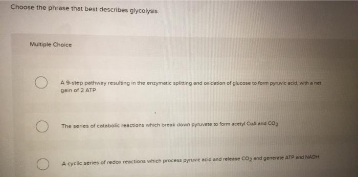 Choose the Phrase That Best Describes Glycolysis.